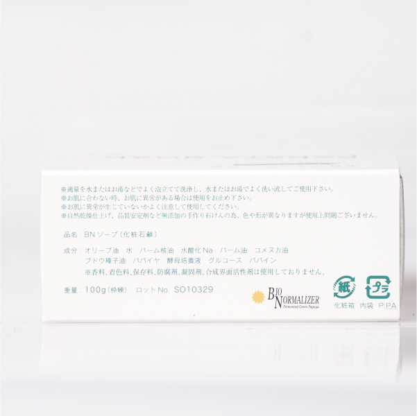 | Material | olive oil, water, palm kernel oil, sodium hydrate, palm olein, rice bran oil, grape seeds oil, papaya fruit extract, yeast culture, glucose, papain | Servings | 100g |