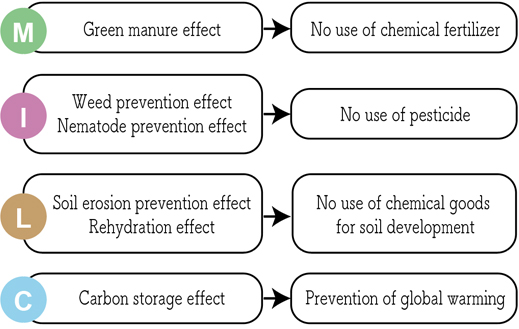 PEANUTGRASS has root bacteria which convert atmospheric nitrogen into natural fertilizer. Its roots are deeply-rooted causing water draining effect.